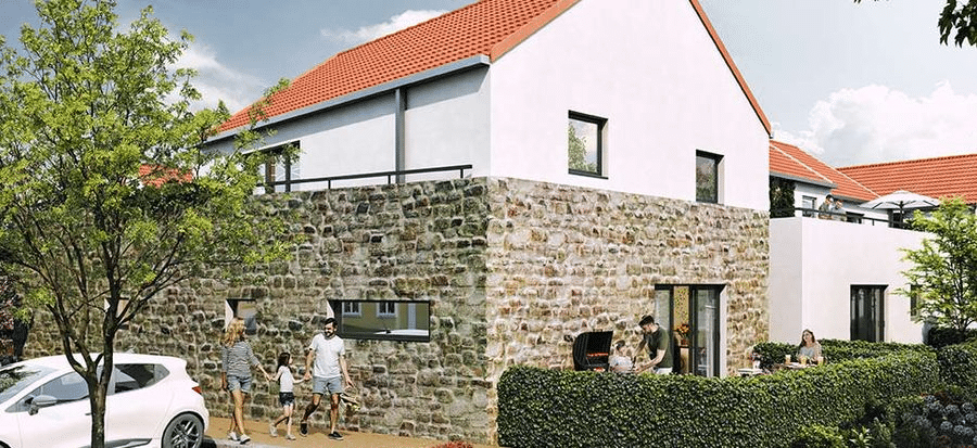 La plantation de haies, d’arbres formés en cépées et de fruitiers permet de ménager des vues depuis les logements tout en préservant l’intimité des résidents. Outre les maisons individuelles, le hameau abrite 32 appartements, avec jardins privatifs pour les logements en rez-de-chaussée.